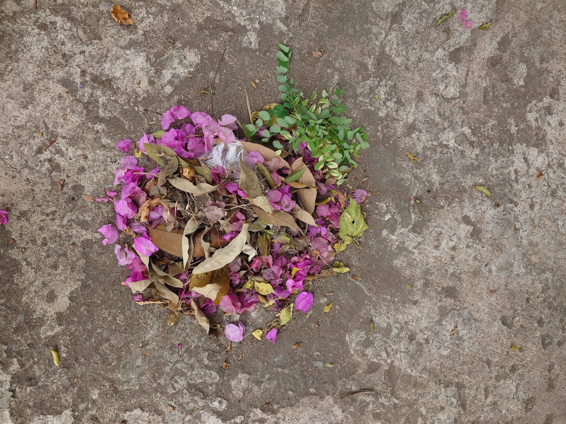 I think because of this I've been noticing the signs of life around the muban. Flowers on the trees, fallen to the ground, branches and twigs, and of course all the bird calls.